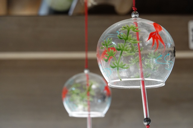 丁度風が吹いてきて、風鈴の音色が心地よく鳴り、風鈴の吊るされている数なのかよくわからないのですが、いい音階で音がでていましたよ♪