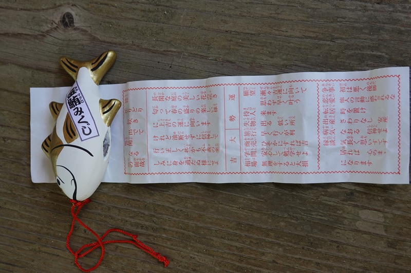 夏詣最後なのでおみくじを引いてみますが、ここのおみくじはマグロを釣ります