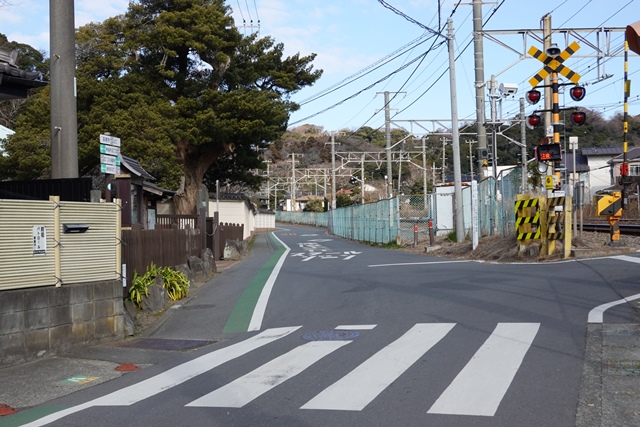 英勝寺できれいな梅に迎えられ、線路と道路が分かれる方へ道なりに進み、海蔵寺まであと200メートル