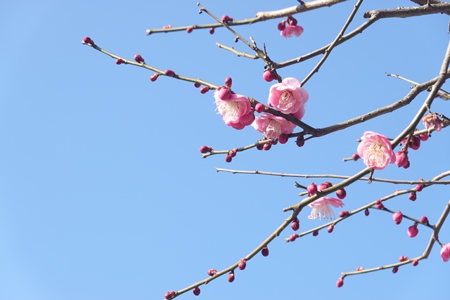梅が咲き、河津桜、桃、桜(ソメイヨシノ)へ繋がり、その中で初めに咲く花は梅。