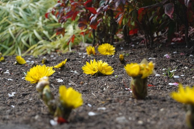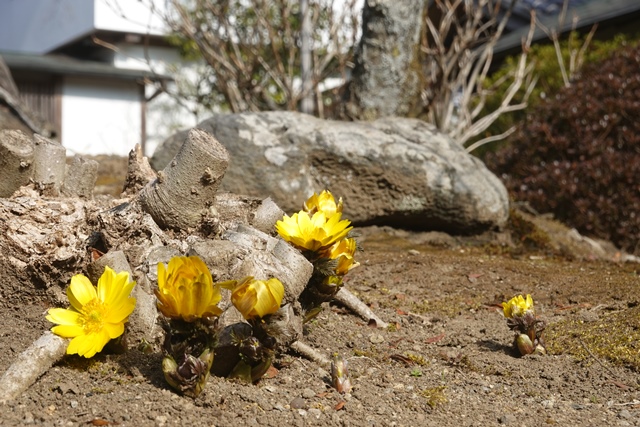 春らしさの黄色で咲き始めた福寿草(ふくじゅそう)の花が咲いていましたよ