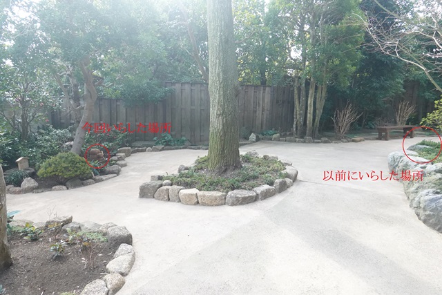 いらっしゃる場所は、妙智池前、苔、竹林(海光庵前)で