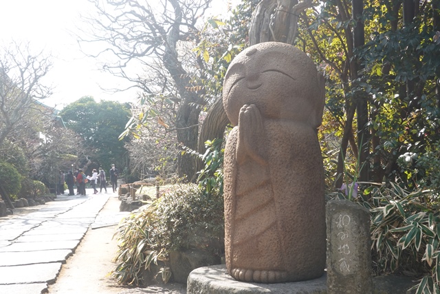 鎌倉駅に戻り、江ノ電で長谷駅に行くと、遠足などで訪れられた中学生ぐらいの子が自分自身、過去に同じ歳ぐらいのときに訪れたのを思い出しながら長谷寺に行き、池と番傘の風情ある中に梅の花が咲き、その中を歩きながら3個所ともうひとつにいらっしゃる良緑地蔵さまと和み地蔵さまを無事に見つけ、御朱印はきれいな梅と良緑地蔵さまが描かれ、良緑地蔵さまの笑顔を分けてもらえました。
