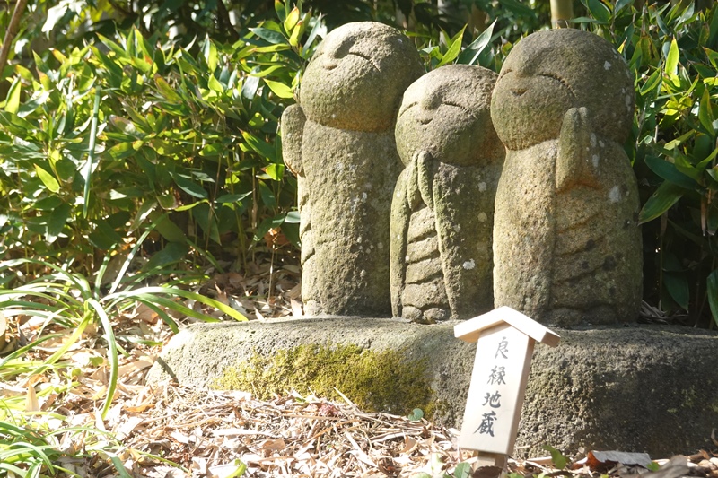 紫陽花路から階段を降り竹林の方に行き、海光庵さんのエントランス前に無事、良縁地蔵さまを見つける事ができました