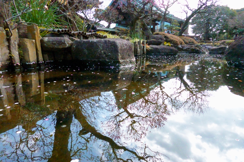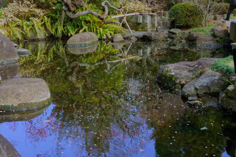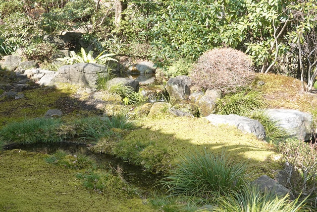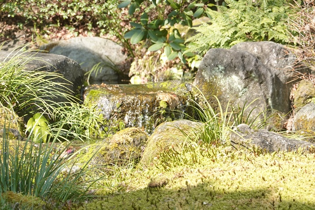 池に流れ込む水の音を聴いたり、池を眺めてから階段を上がると