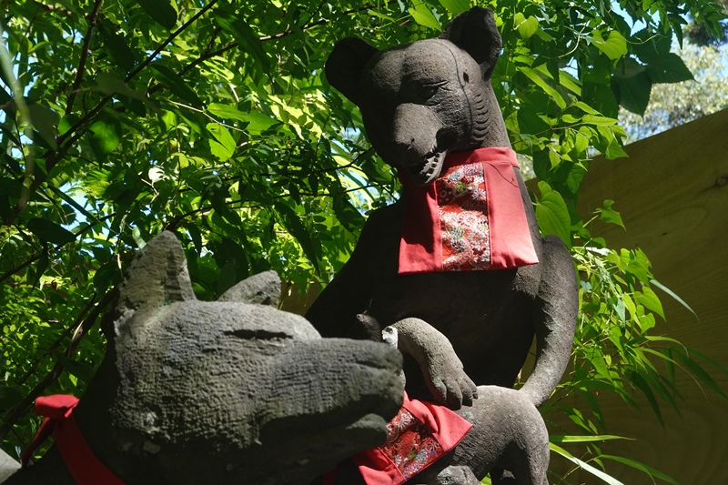 竹の筒の奥に狛犬さんと小さな狐さんを発見!