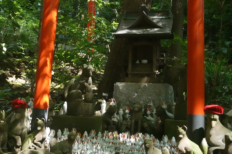 稲荷社の横には普通から小さいサイズの狐さまがいっぱいで幻想的な雰囲気
