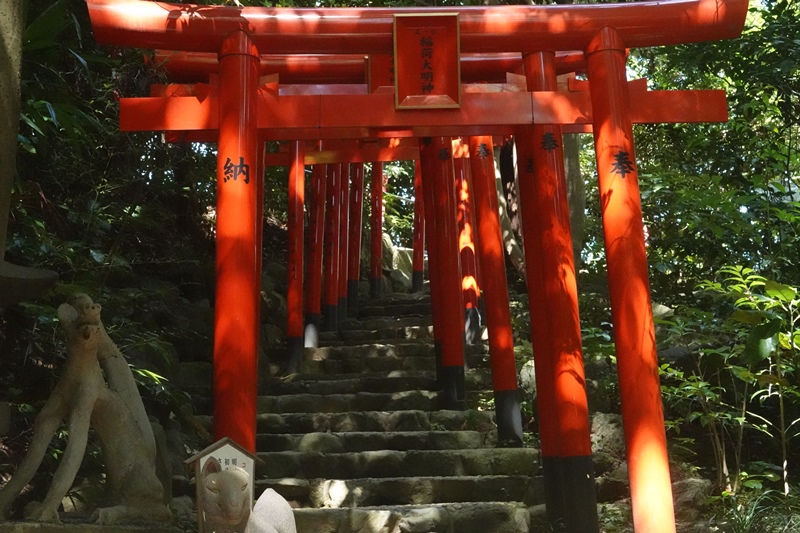 はだの桜みちは輝く緑色の中を通り、春にも訪れた白笹稲荷神社にやってきました
