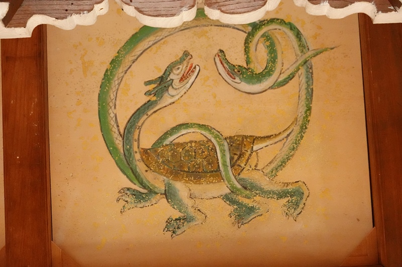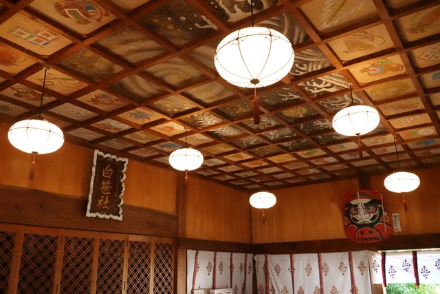 社務所の方にお断りし、拝殿の中にある天井絵を眺めます